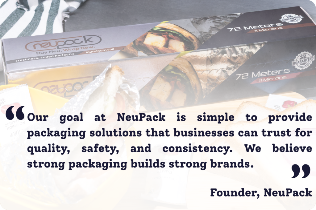 At Neupack, we believe that great packaging is the foundation of product quality, safety, and presentation. Established with a vision to redefine packaging standards, we specialize in providing premium foil rolls and customized packaging solutions to businesses across various sectors—including food service, retail, and daily meal planning.